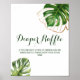 Modern Tropical Greenery Palm Leaf Gender Neutral Baby Shower Diaper Raffle Activity Game Poster featuring fresh watercolor tropical palm leaves, gold foil leaves in green and white colours with pastel greenery background and minimalistic, simple design. Watercolor tropical design is the great way to invite guests to a gender neutral Cute Baby Shower. Matching products avalible, you can also ask me in massage for a needed item I can creating for you. You can also use this poster for other Sigh, just change the Title and Task