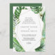 This wild tropical palm geometric formal wedding invitation card is perfect for a beach or destination wedding. The design features an exotic array of green watercolor banana palm tree leaves, ferns, foliage, botanical plants and greenery for a tropical summer feel.