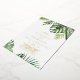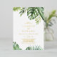 This wild tropical palm gold foil casual wedding foil invitation is perfect for a beach or destination wedding. The design features an exotic array of green watercolor banana palm tree leaves, ferns, foliage, botanical plants and greenery for a tropical summer feel with luxurious gold foil text.