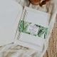 This wild tropical palm wedding invitation belly band is perfect for a beach or destination wedding. The design features an exotic array of green watercolor banana palm tree leaves, ferns, foliage, botanical plants and greenery for a tropical summer feel. Personalise these paper belly bands with the names of the bride and groom and the wedding date.