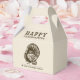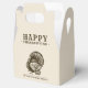 Celebrate Thanksgiving this year with this unique Favour cake box. It features a vintage style illustration of a wild turkey. A classic symbol of a Thanksgiving dinner. It sits against a light tan backdrop with your details in a similar walnut brown colour to the illustration.