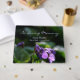 Lovely and natural photograph of wild violets. Design on hard cover guest book with texts for Celebration of Life to customise. You can easily change text (colour, font, size and position) by clicking the customise button. Available in spiral notebook too. Matching Celebration of life invitation, Sympathy Thank You photo card, family address labels and more...
