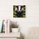 Add a touch of the British countryside to your home with a striking high definition badger wall clock featuring a crystal clear 8K close-up portrait of a noble European badger peeing through lush Woodland leaves. The square clock is both a functional timepiece and a stunning piece of wildlife art with its bold black and white markings and detailed fur. It makes a perfect statement piece for a kitchen hallway or home office.