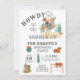 A "saddle up" cute and whimsical wild west cowboy first birthday invitation in terracotta browns and blues for a boy, with western gear cowboy gear and ranch animals. Saddle, steer, horses, cactus, saddle and lasso. Everything as cowboy needs. You can customise this for any age from 1 to around 8 years old, simply add the number in front of the word birthday.