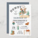 A "saddle up" cute and whimsical wild west cowboy first birthday invitation in terracotta browns and blues for a boy, with western cowboy gear and ranch animals. Saddle, steer, horses, cactus, and lasso. Everything a cowboy needs. You can customise this for any age from 1 to around 8 years old, simply add the number in front of the word birthday. The back of the invite is a solid smoky grey blue to match the blue grey type on the front.