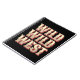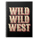 Retro style grunge "Wild Wild West" text design with striped letters in yellow, red and beige colours