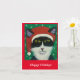 Tuxedo cat with Santa hat says happy holidays