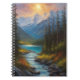 Capture the essence of wilderness in this enchanting spiral notebook. Immerse yourself in the digital artwork that showcases a serene stream cascading down rocky hills. A pine forest flourishes, and snowy mountains on the horizon paint a picture of tranquil beauty. This notebook holds the charm of nature's allure within its pages.