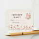 The "Wildflower Baby is Brewing" Guess How Many Game enclosure card is a playful and charming addition to your baby shower. Featuring a delicate tea cup and soft beige and orange wildflowers, this card invites guests to guess how many small items (like candy or beads) are in a jar. The nature-inspired design adds a whimsical touch to the game, making it a fun and engaging activity for your tea party-themed celebration.