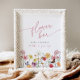 "Flower bar - make a bouquet to take on your way" sign with Wildflower and Butterfly theme for a modern summer Bridal Shower.