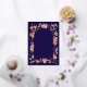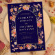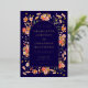 Elegant Wildflower arch navy blue and gold foil fall wedding invitation. This enchanting boho wedding invitation is a stunning blend of autumnal warmth and elegant charm. Featuring hand-painted, watercolor wildflowers in a delightful wreath design, the invitation showcases a rich colour palette of burnt orange, brown, yellow, green, terracotta, peach, coral, purple, and pink. The warm earthy tones combined with the rich navy blue background create a perfect harmony, making it an ideal choice for a fall wedding. The elegant gold foil accents bring a touch of sophistication, while the elegant script in gold foil adds a personal, classic flair to all your essential wedding details. Designed by the talented artist Catherine Sweetman, this unique invitation embodies the spirit of a cosy, intimate celebration in the heart of autumn. With easy-to-personalise templates, it offers a seamless way to convey your wedding information with style and artistry. The background in a rich navy blue adding a natural warmth, bringing the beautiful florals to life in a way that feels both fresh and timeless.