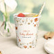 Celebrate the upcoming new arrival with this elegant boho wildflower fall baby shower paper cup design. Featuring a soft watercolor wildflower design in warm tones of orange, cream, and yellow, this design brings a gentle, botanical charm to your baby shower celebration. Pale green botanical accents and a cream-toned circle frame the expecting mum's name, with playful script for the wording of baby shower to add a cheerful touch. Perfect for a fall shower, this floral design sets the tone for a relaxed and heartwarming gathering. A lovely choice for the relaxed mum who loves wildflowers, botanical beauty, and boho elegance.