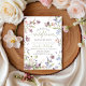 Celebrate the mommy-to-be with this "Our Little Wildflower is on the way" invitation. Featuring delicate watercolor wildflowers and purple butterflies. Perfect for a boho garden baby shower. Easily customize with event details for a beautiful floral celebration.
