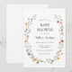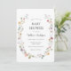 Baby shower invitation featuring a watercolor wreath of wildflowers and baby bottles. Customize with your information for the mom to be.