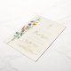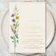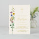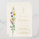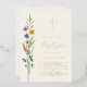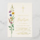 This floral Baptism invitation features watercolor wildflowers and a cross in gold foil on a soft cream background.