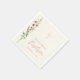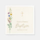 This floral Baptism paper napkin features wildflowers and a cross with gold typography on a soft cream background.
