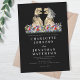 The design includes elegant modern white script typography that’s easy to personalize simply add the bride and groom’s names, wedding date, and all your special details. Set against a sleek black background, this invitation blends whimsical dinosaur art with chic modern style.