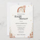 At the top centre of the invitation, a beautifully crafted boho design draws the eye, setting the tone for a magical baby shower. This unique and tasteful design ensures that your invitation stands out, making it an unforgettable announcement for a very special occasion. Ideal for those who appreciate a touch of nature and a nod to bohemian style, it's a lovely way to set the stage for a celebration of new life.
