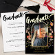 Celebrate your daughter’s college graduation with this stunning Modern Gold Foil Script Calligraphy Photo Announcement Card. Designed by artist Catherine Sweetman, this card features elegant gold foil calligraphy and a whimsical watercolor wildflower arch, capturing the spirit of the occasion. The front showcases your daughter’s name and graduation details in stylish gold. Foil script on a black background, while the back provides space for additional information in modern stylish typography. With an easy-to-use photo template, you can personalise the card with a cherished photo of your graduate. This unique, original design is the perfect way to commemorate her achievement and share the joy with friends and family.