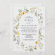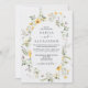 Boho Wildflower floral wedding invitation with yellow, green and lavender flowers.