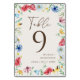 Watercolor Wildflower Boho Garden Floral Beige Table Number. Matching items available.