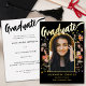 Celebrate your daughter’s college graduation with this stunning Modern Gold Foil Script Calligraphy Photo Announcement Card. Designed by artist Catherine Sweetman, this card features elegant gold foil calligraphy and a whimsical watercolor wildflower arch, capturing the spirit of the occasion. The front showcases your daughter’s name and graduation details in stylish gold. Foil script on a black background, while the back provides space for additional information in modern stylish typography. With an easy-to-use photo template, you can personalise the card with a cherished photo of your graduate. This unique, original design is the perfect way to commemorate her achievement and share the joy with friends and family.