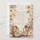 A soft, vintage Western design featuring cowgirl boots, wild daisies, and warm rustic tones. This aesthetic blends country charm with feminine florals, creating a cozy, down-to-earth style perfect for celebrating the bride-to-be. The gentle parchment texture, prairie blooms, and hand-drawn Western elements make this design ideal for anyone planning a warm, countryside-inspired celebration.