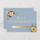Elegant, rustic, boho, botanical, dusty blue wedding details card with watercolor flowers and sunflowers.