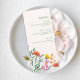 Present your wedding meal in elegant botanical style with this wildflower wedding menu card. Delicate garden florals and soft greenery create a fresh, romantic design that beautifully complements nature-inspired wedding décor.
