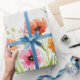 The image shows a watercolor painting of wildflowers in a loose, flowing style.
