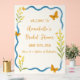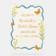 Welcome your guests with this whimsical butterfly bridal shower sign, perfect for a garden-inspired celebration. With soft yellow goldenrod florals, a chic wavy blue border, and fluttering orange butterflies, this romantic design sets the tone for a sweet and cheerful event. Customise the name and date for a heartfelt entrance moment. Ideal for spring or summer showers, nature-loving brides, or anyone planning a feminine, outdoorsy party with vintage-meets-modern flair.