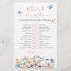 Bring elegance and laughter together with this Elegant Butterfly and Wildflower “Would She Rather?” Bridal Shower Game. Featuring refined floral artwork and graceful butterflies, it’s a perfect addition to upscale showers or garden brunches.