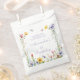 Customise this Wildflower 1st Birthday Favour Bag with your Baby Girl's Name and add a Personal Touch to to her Party Favours. A perfect way to say Thank You. The Colourful Meadow Flowers and Whimsical Butterflies set against a Crisp White background, create a Dreamy Boho Look for a Little Girl's Party or Birthday Picnic.