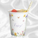 Customise this Colourful Wildflower 1st Birthday Paper Cup and add an Elegant Touch to your Baby Girl's Special Day. Perfect for a Little Girl's Birthday Party or Picnic. The Watercolor Meadow Flowers and Whimsical Butterflies against a Crisp White Background, will give her Celebration a Soft, Boho Look.