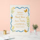 Welcome your guests with this cheerful butterfly garden wedding sign, designed to match our summer suite. Adorned with hand-drawn wildflowers, fluttering orange butterflies, and a wavy blue border, this sign sets the tone for a joyful, nature-inspired celebration. Ideal for outdoor ceremonies, botanical garden venues, or whimsical spring and summer weddings. Easily personalise with your names, wedding date, and location. Style it on an easel for an inviting entrance or display it near the guestbook or ceremony path.