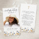 Keep the memory of a loved one close with this personalized prayer card featuring a cherished photo, the title CELEBRATING THE LIFE OF NAME and dates accented with watercolor wildflowers on the front and an editable prayer accented with a simple gold cross on the back. With its simple yet elegant classic design and modern script typography, it makes a meaningful keepsake to share at a Celebration of Life, funeral, visitation, wake or memorial service and offers comfort and a lasting tribute for family and friends. Its small and portable size of 3.5x2" (wallet-sized) makes it convenient for loved ones to carry it with them as a reminder of your loved one’s life and spirit. Personalization makes each card unique.