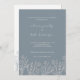 Elegant, simple, minimalist wildflower floral boho design in Dusty Blue front & White back invitation for spring, summer wedding. It offers a romantic look with handwritten script typography.