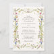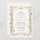 This Wedding invitation features a watercolor wildflower wreath and butterfly illustrations. Personalise with your information or click "Click to customise further" to edit font styles, size and colours.