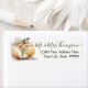 An elegant muted white pumpkin with tinges of orange is surrounded with a bouquet of yellow and blue wildflowers paired with muted earthy sage leaf foliage greenery. Return address mailing labels for wedding, baby and bridal shower invitations. Perfect for late summer and fall harvest events. Watercolor artwork was created by internationally licensed artist and designer, Audrey Jeanne Roberts ©.