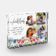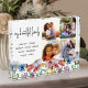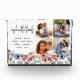 Country wildflower photo block personalised with your custom text, such as "my beautiful family" and the first names of your partner, siblings, kids, in-laws and/or grandchildren for example. The photo template is ready for you to include 4 of your favourite photos, which are displayed in rounded square shapes. The design features watercolor country wild flowers including poppy, daisy, cornflower, coneflower and clover. It is lettered with casual modern script and classic typography. If you have any problems with the placement of your pictures, try cropping to a square and re-uploading. Feel free to change the font or background colour to suit (click "edit using design tool").
