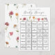 Find the Guest Baby Bingo shower activity card featuring a minimalistic design with calligraphy and wildflowers. Customise with your questions if desired.
