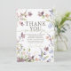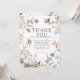 Send a heartfelt thanks with this wildflower-themed thank you card. Matching the boho floral birthday set, it features lovely watercolor butterflies and garden blooms. A perfect way to express gratitude to family and friends after your little girl's first birthday celebration. Elegant and timeless stationery design.