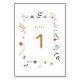 Cute floral baby shower table number featuring a watercolor wildflower frame with tiny wildflowers.