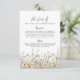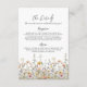 Share important information with your guests in a beautiful and cohesive way with this elegant wedding details card. The design features a clean white background for a minimalist and sophisticated look, accented with delicate wildflowers forming a graceful border. Muted pink, yellow, lavender, and blue blooms with gentle green leaves add a fresh, garden-inspired touch without feeling busy.