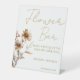 This gorgeous wildflower flower bar sign wedding shower sign is embellished with modern handwritten calligraphy. Personalise it with the couple's names and even change the text if desired. The wording can be updated at any moment.