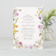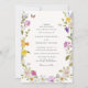 This Wedding invitation features a watercolor wildflower wreath and butterfly illustrations. Personalise with your information or click "Click to customise further" to edit font styles, size and colours.