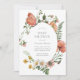 Celebrate a little one on the way with this elegant wildflower themed baby shower invitation, featuring pink and yellow flowers, greenery, and butterflies.