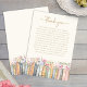 Wildflower Graduation Thank You Card. Show your appreciation with a thank you card that’s as charming as your graduation celebration. Featuring handpainted watercolor books and wildflowers in soft pink, blue, green, and gold, this design brings a sophisticated yet whimsical touch to every note of gratitude. The vintage typewriter font and graceful gold script on an ivory backdrop add a refined literary feel, making it the perfect way to express thanks with elegance. Customise the wording, fonts, and background to create a heartfelt message that’s truly your own. Send a thank you that leaves a lasting impression—start personalising today!