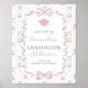 Designed with a soft, romantic aesthetic, this sign features delicate floral accents, graceful ribbon details, and a classic graduation cap motif at the top. The pastel color palette creates a refined, timeless look that complements everything from garden-inspired gatherings to chic indoor celebrations.