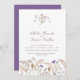 Pretty botanical wildflowers and soft grasses watercolor wedding invitation with QR code on white with pretty entwined harebells and heather flowers in soft muted blue and purple monogram and a selection of soft muted brown pink grasses and wildflower art along the bottom all hand painted watercolors. Delicate fall to winter feel botanical art invite with script text on white and a muted pink, brown, blue, mauve, purple colour palette. Personalise with your own initials, names, wedding date, time, venue, further details and QR code to your wedding website on the back. Other matching items are available. Original hand watercolor wildflower paintings and design by Sarah Trett for www.mylittleedenweddings.com